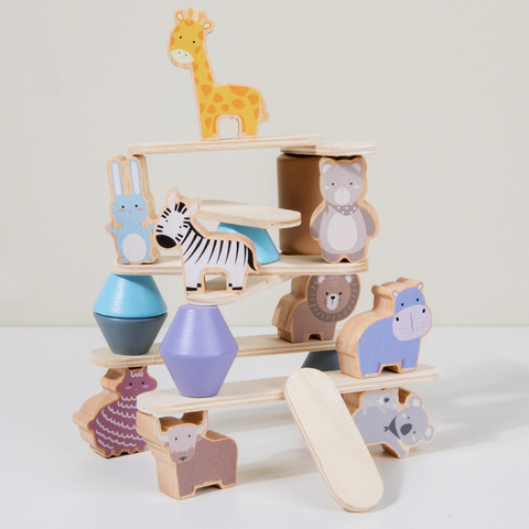 Montessori ha ispirato animali in legno blocchi di costruzione educazione precoce equilibrio impilamento giocattolo educativo